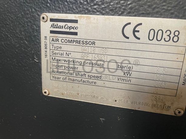 Compressor Marca: Atlas Modelo: GA110 VSD Nº de série: APF 165831