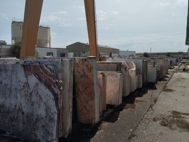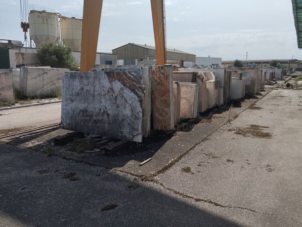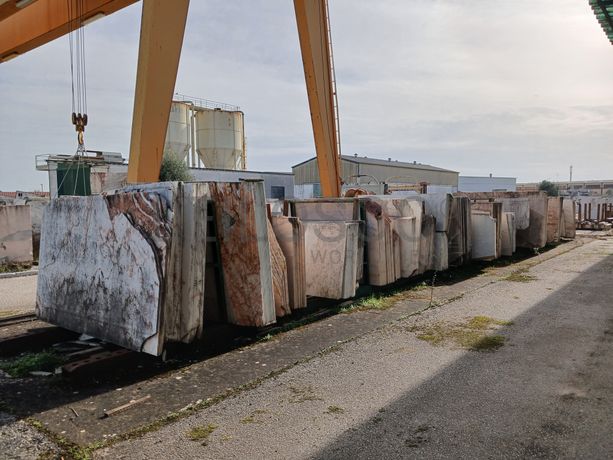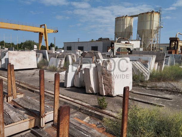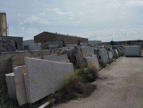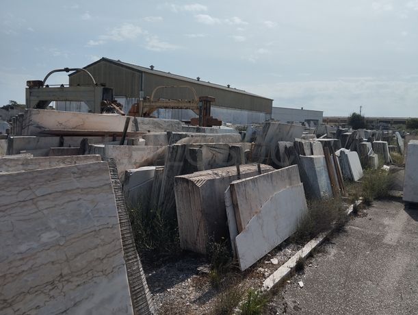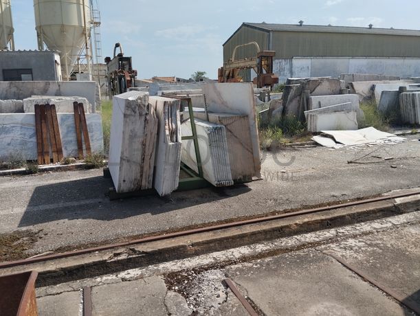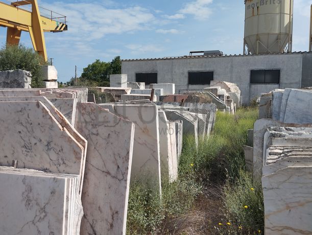 Lote composto por: - Cerca de 120 metros de comprimento de chapas serradas de aproximadamente 2,80m x 1,80m, com espessuras médias de 2/ 3/ 4cm, de mármore branco estremoz, rosa, ruivina e diversos calcários; - Cerca de 155 metros de comprimento por 22 metros de largura com chapas serradas de aproximadamente 2,80m x 1,80m, com espessuras de 2/ 3/ 4cm, de mármore branco estremoz, rosa, ruivina e diversos calcários; - Cerca de 2.500 tons de blocos de várias dimensões, de mármore branco estremoz, rosa, ruivina e diversos calcários; - Cerca de 155 metros de comprimento por 5 metros de largura, de restos/ desperdícios de diversos tipos de mármores de diversas medidas. Notas Informativas - Acresce IVA; - A adjudicação fica sujeita à apreciação dos valores obtidos entre as partes e o todo.