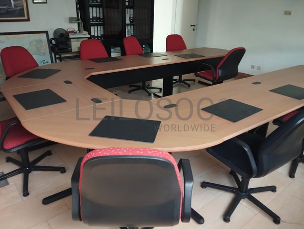 Lote composto por: - 2 Armários metálicos com vidros de correr; - Estrutura metálica e tampo de madeira; - Mesa reuniões em U, em vários módulos; - 9 Cadeiras. Notas Informativas - Acresce IVA; - A adjudicação fica sujeita à apreciação dos valores obtidos entre as partes e o todo.