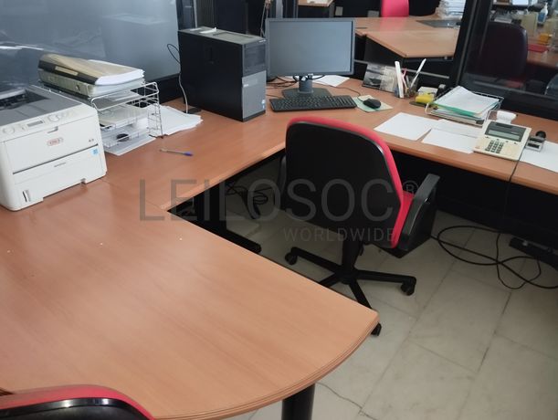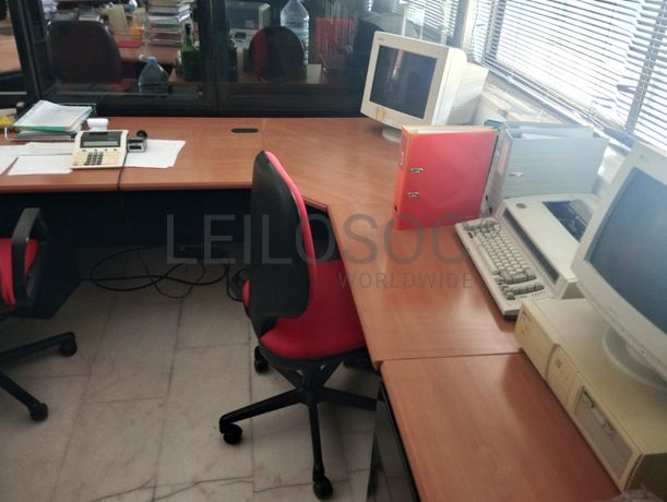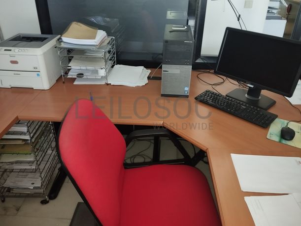 Lote composto por: Mobiliário - Vários módulos de secretárias; - 3 Armários metálicos com portas de recolher; - 3 Cadeiras. Tecnologia - Equipamento informático diverso: computadores, ecrãs e impressoras. Notas Informativas - Acresce IVA; - A adjudicação fica sujeita à apreciação dos valores obtidos entre as partes e o todo.